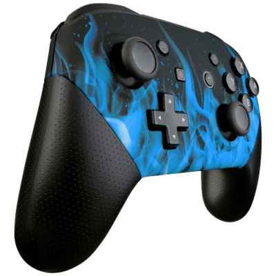 This Blue Flames Nintendo Switch Pro Controller is finished with a soft touch look and feel. All the buttons, triggers, bumpers, thumbsticks, and rear casing are all original and genuine Nintendo parts. As a result, you will be playing your games with the very best controller.